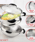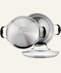 Includes 4 pieces,- 7 quart stock pot with stay cool ergonomic handles. Also use as stock pot, saucepan, sauce pot or soup pot.