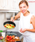 • NON-TOXIC NONSTICK: 100% Ceramic nonstick on AVACRAFT full body stainless steel frying pan base makes it 100% safe & healthy. US nonstick Ceramic technology, free of any toxins making it the best nonstick pan set. Free of PTFE, PFOA, PFOS. Better than hard anodized nonstick pans.
