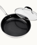 • DURABLE & ERGONOMIC: The only high quality food grade non stick fry fan with tri-ply 18/10 stainless steel base. Professional construction. Dishwasher safe. Healthy non-stick frying pan. Best non stick pan with lid in the market.