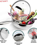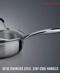 • 18/10 MULTICLAD STAINLESS STEEL SAUTE PAN: 3.5 quart pan with lid. Special matte finish inside to prevent ugly scratches. Mirror finish outside for beautiful look. Signature Avacraft stainless steel cookware collection!